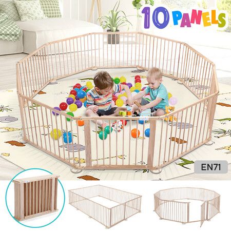 Embrace stress-free parenting and maximise your babyrsquos safety with Kidbot 6 Panel Baby Playpen. Meticulously crafted from environmentally-conscious and sturdy pine wood the infant play yard is durable smooth to the touch and free from paints varnishes and chemicals. Certified by the EN71 standard the playpen is non-toxic odour-free and child-friendly safeguarding your child from exposure to harmful substances and giving parents peace of mind. Arranged up to an impressive 435cm length our wooden playpen boasts exceptional adaptability in various settings from compact to spacious. Designed with convenience and utility in mind this safety gate is customisable in shape foldable and easy to