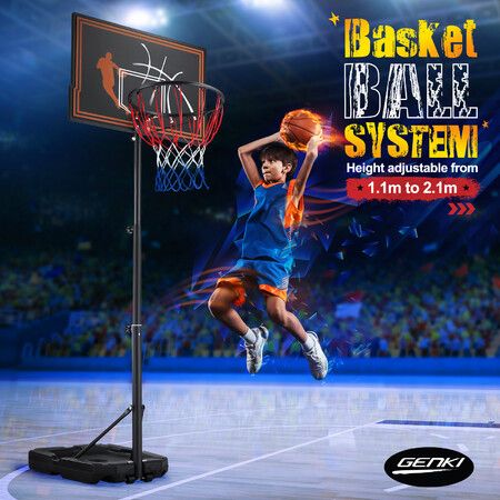 Genki 1.1 to 2.1m Portable Basketball System Stand Ri...